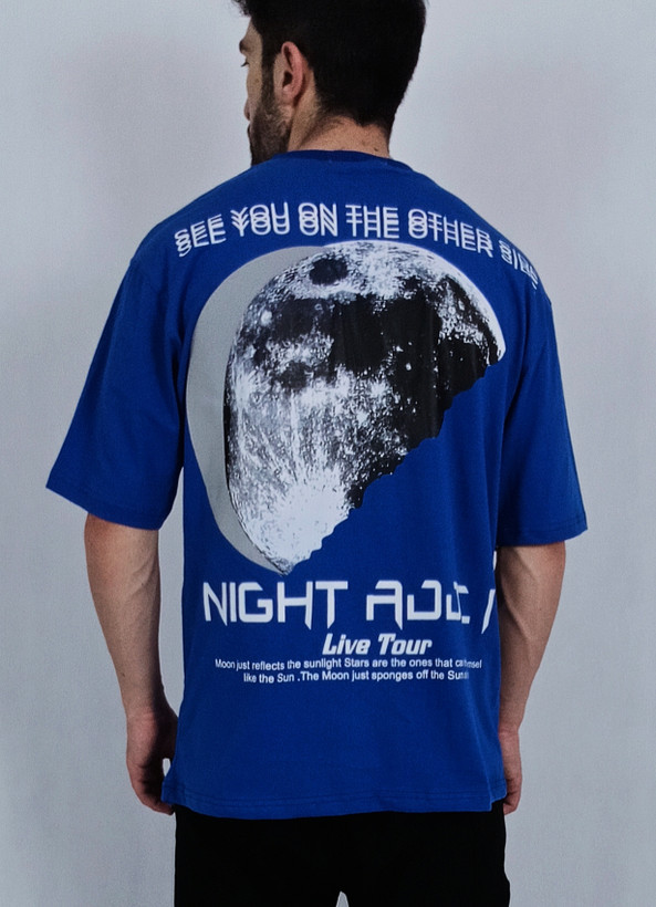 تیشرت آستین کوتاه مردانه آبی طرح ماه شب نما