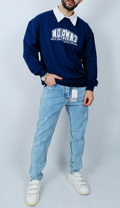 دورس آستین بلند مردانه پاییزه آبی طرح یقه بلایزر