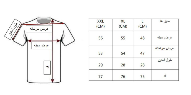 عرض سینه : L48 XL52 XXL55