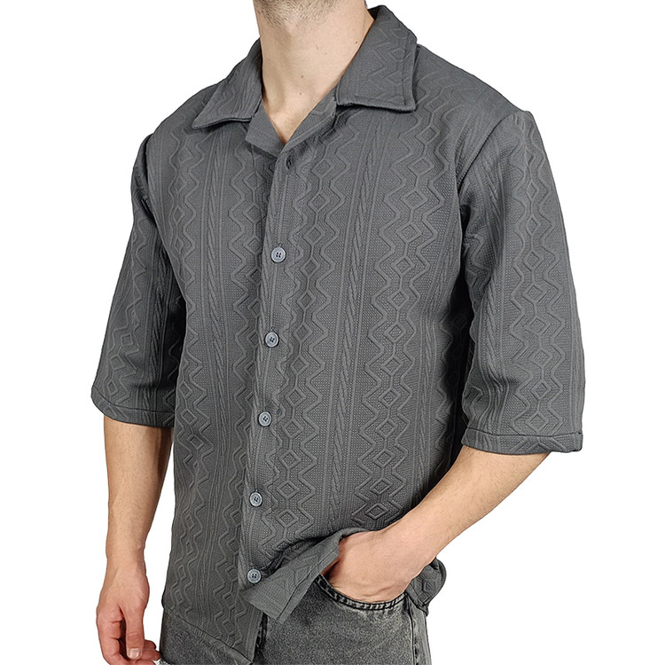 پیراهن آستین کوتاه مردانه طوسی طرح باکسی