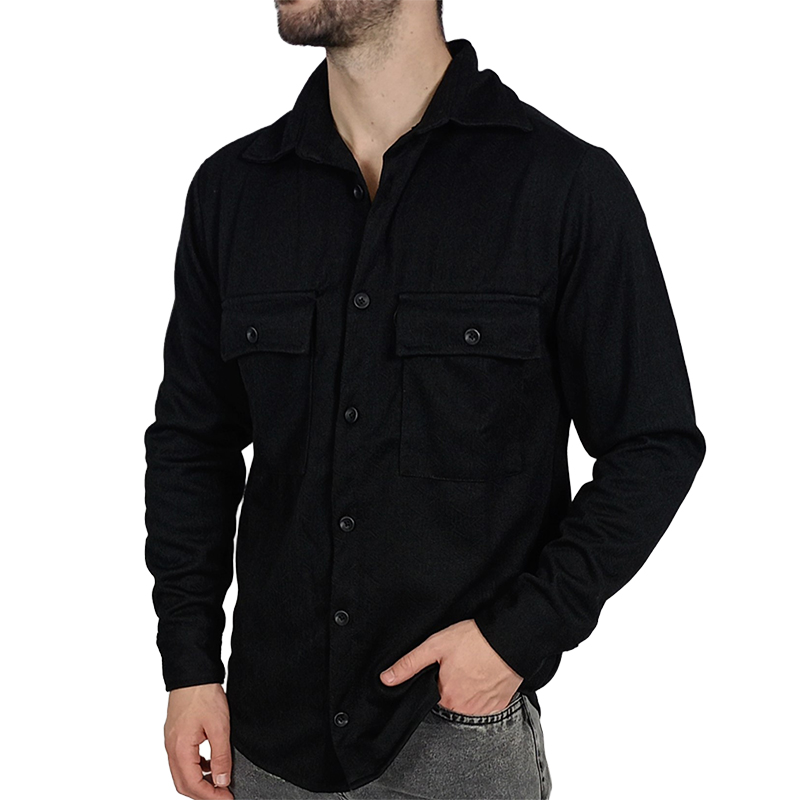 پیراهن آستین بلند مردانه مشکی طرح جیبدار