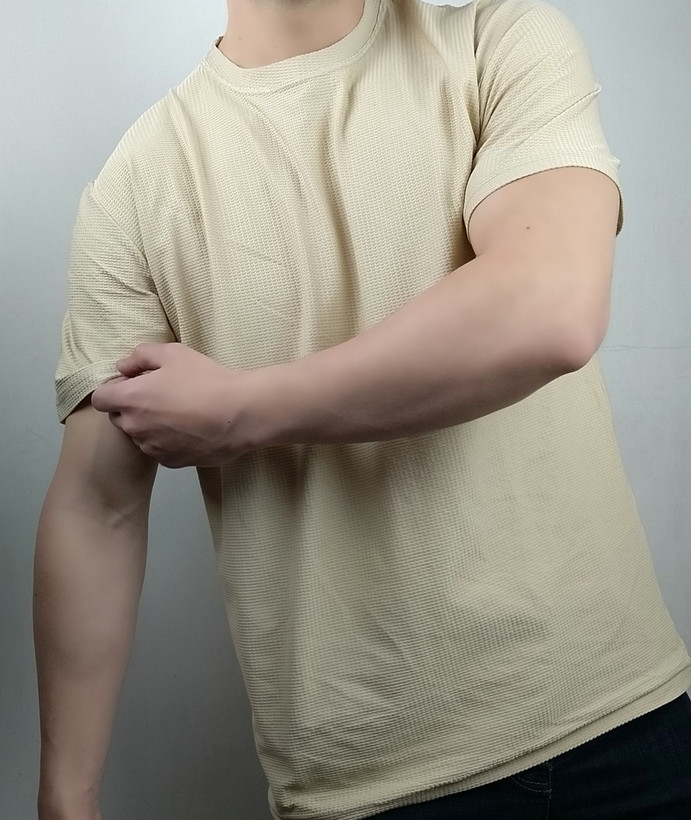 تیشرت آستین کوتاه مردانه کرم ساده پارچه بیسکویتی کاغذی خنک