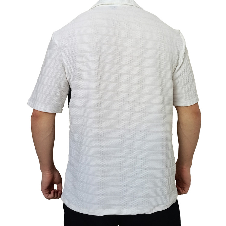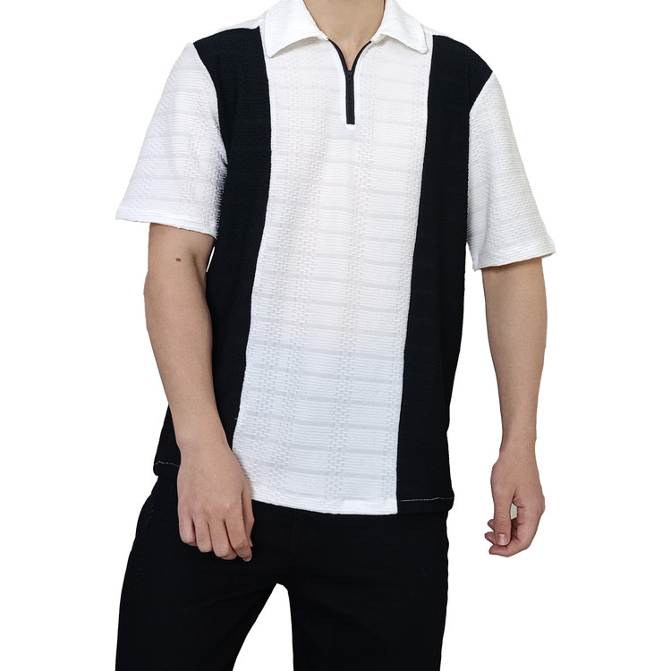 پولوشرت آستین کوتاه مردانه مراکشی سفید مشکی طرح یقه نیم زیپ