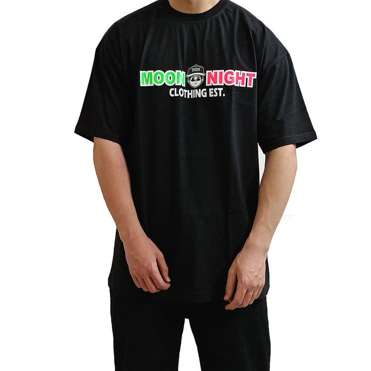 تیشرت آستین کوتاه مردانه مشکی قواره بزرگ طرح مون MOON NIGHT
