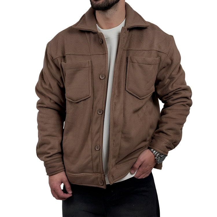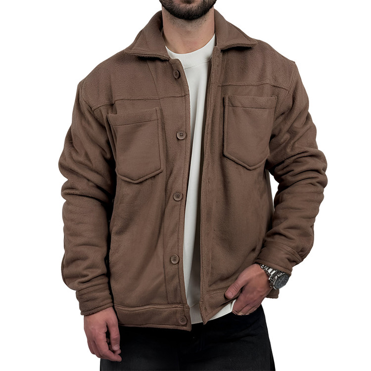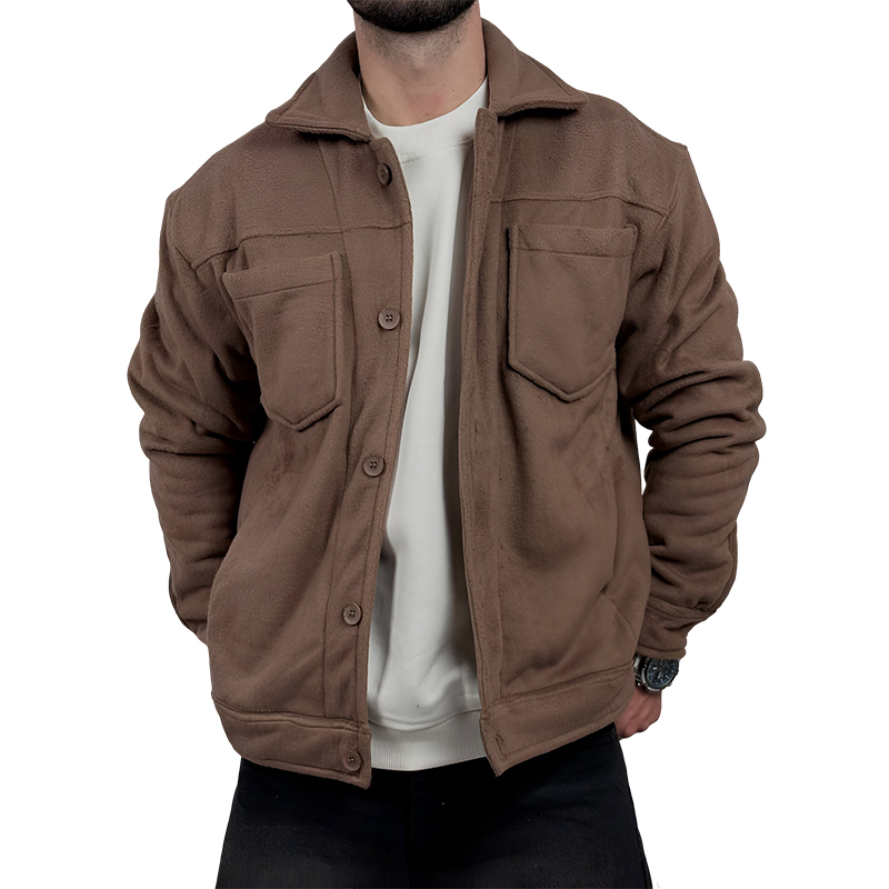 پیراهن مردانه کتی مخمل قهوه ای مدل دو جیب