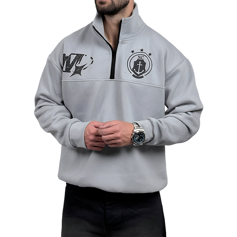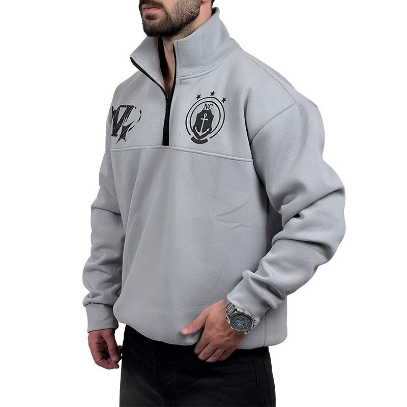 دورس مردانه یقه نیم زیپ طوسی طرح NC