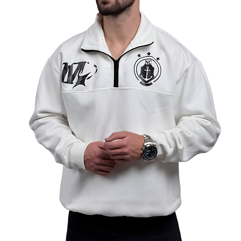 دورس مردانه یقه نیم زیپ سفید طرح NC