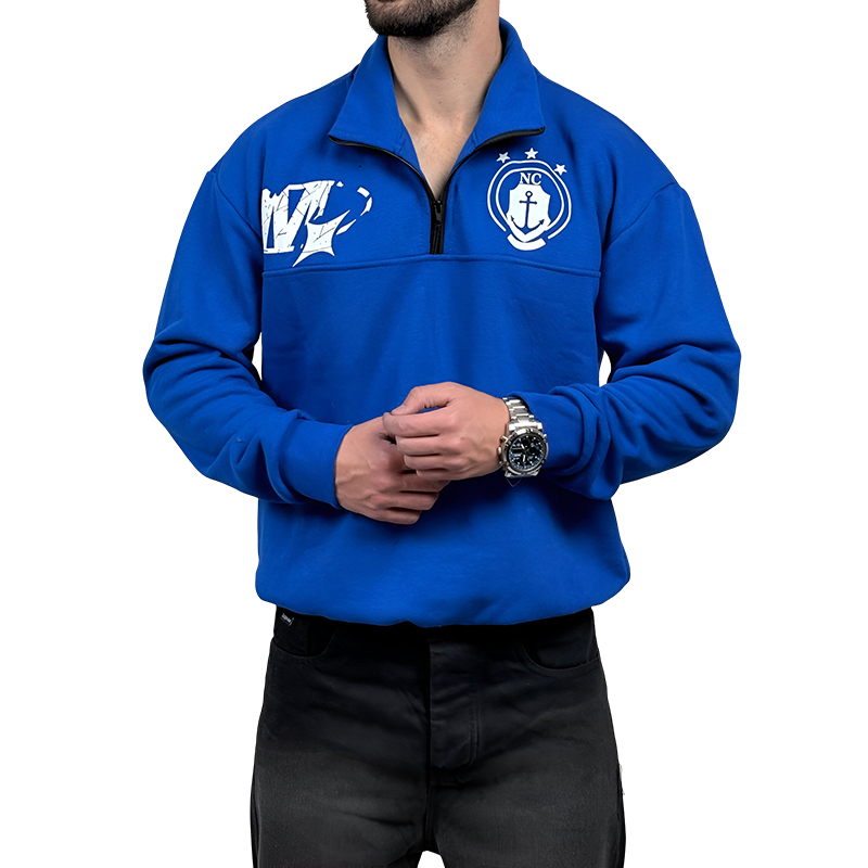 دورس مردانه یقه نیم زیپ آبی طرح NC