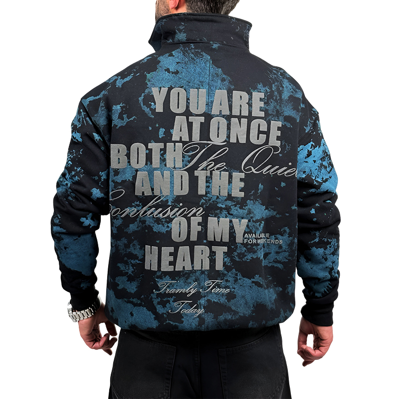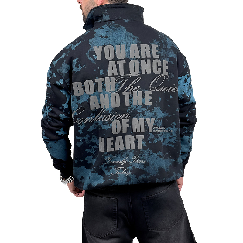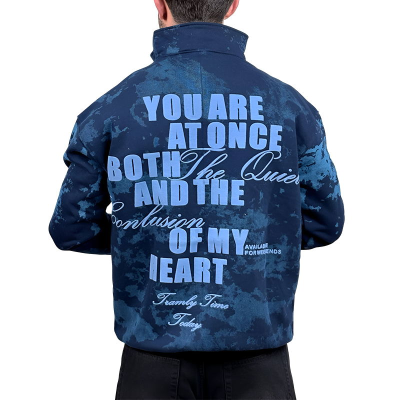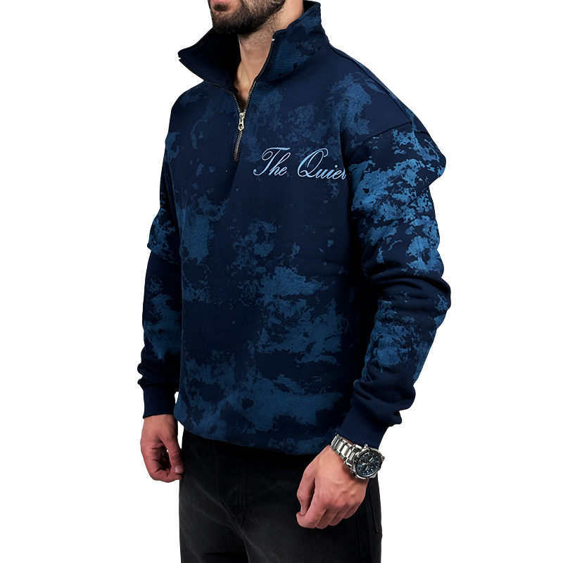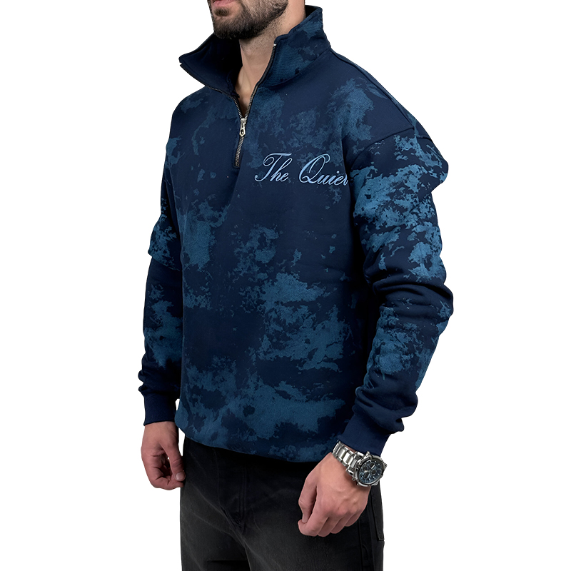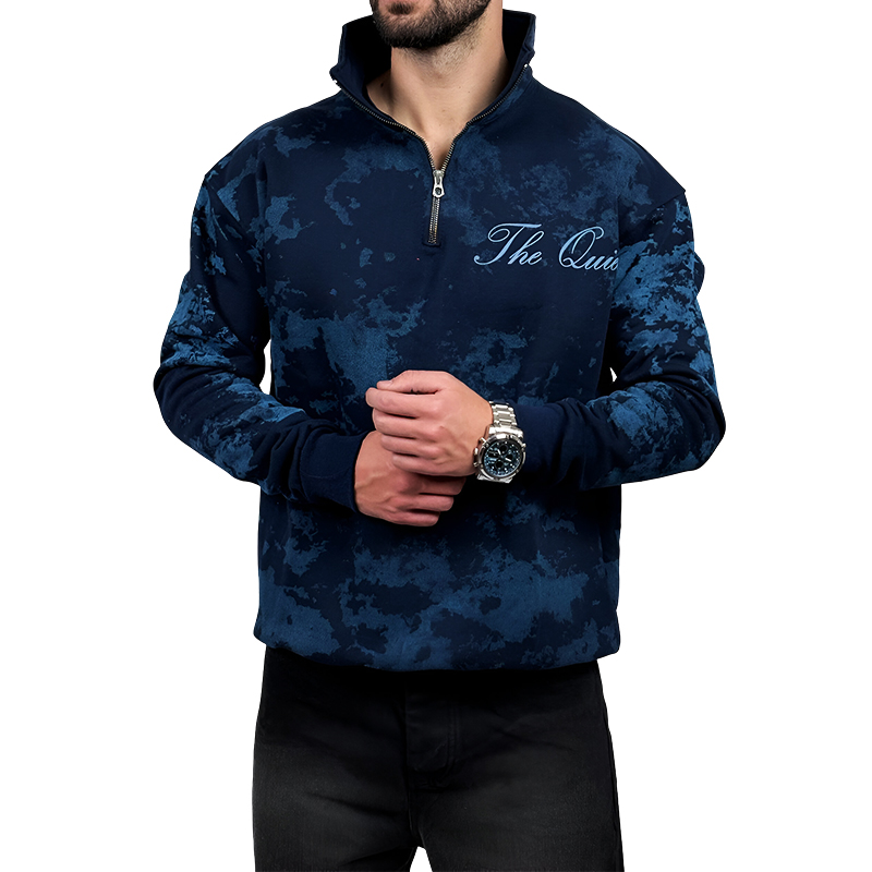 دورس یقه نیم زیپ سرمه ای آبی مدل چاپ برجسته