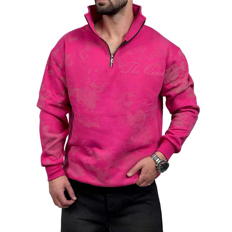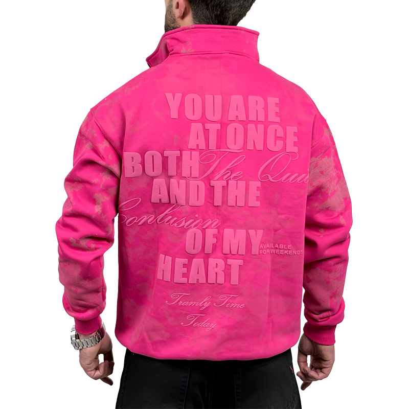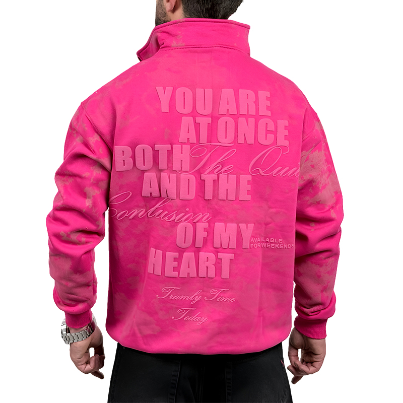 دورس یقه نیم زیپ صورتی مدل چاپ برجسته