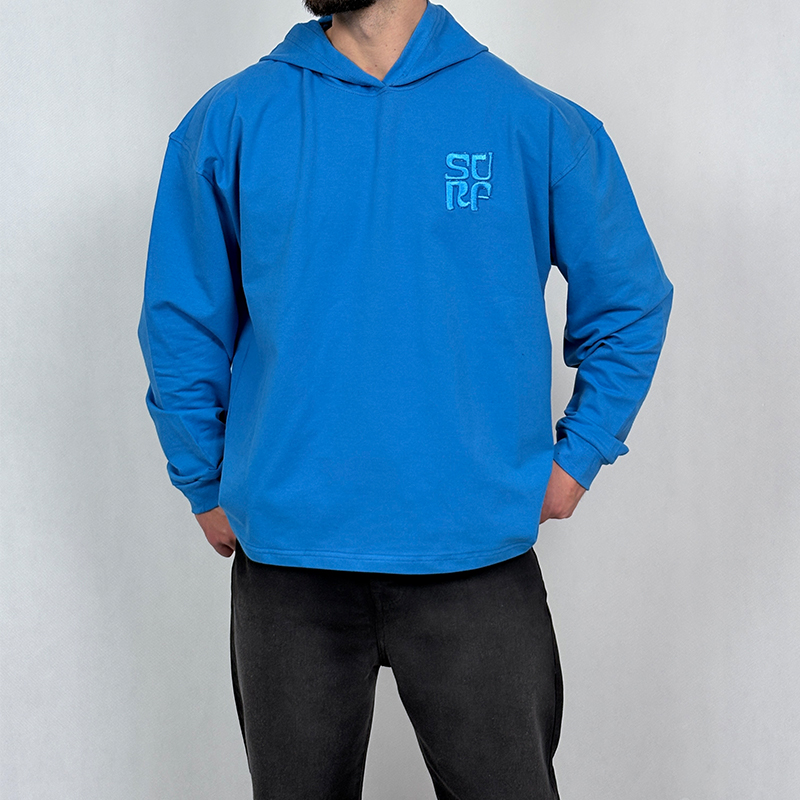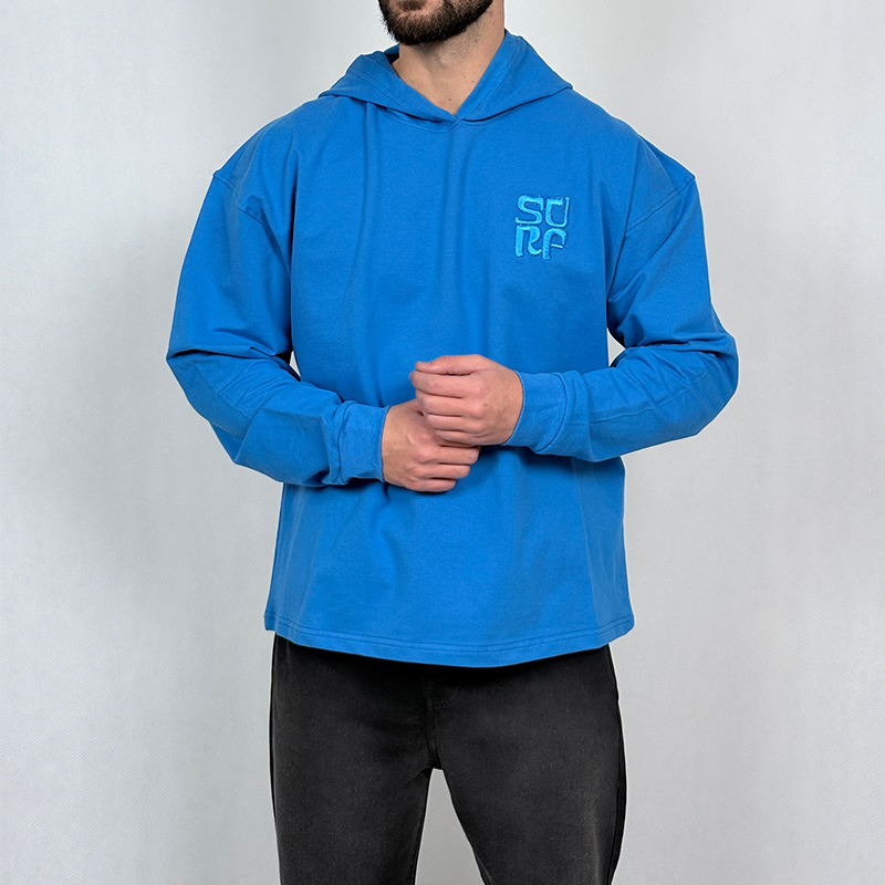 هودی مردانه آبی آسمانی پنبه دو نخ طرح مینیمال