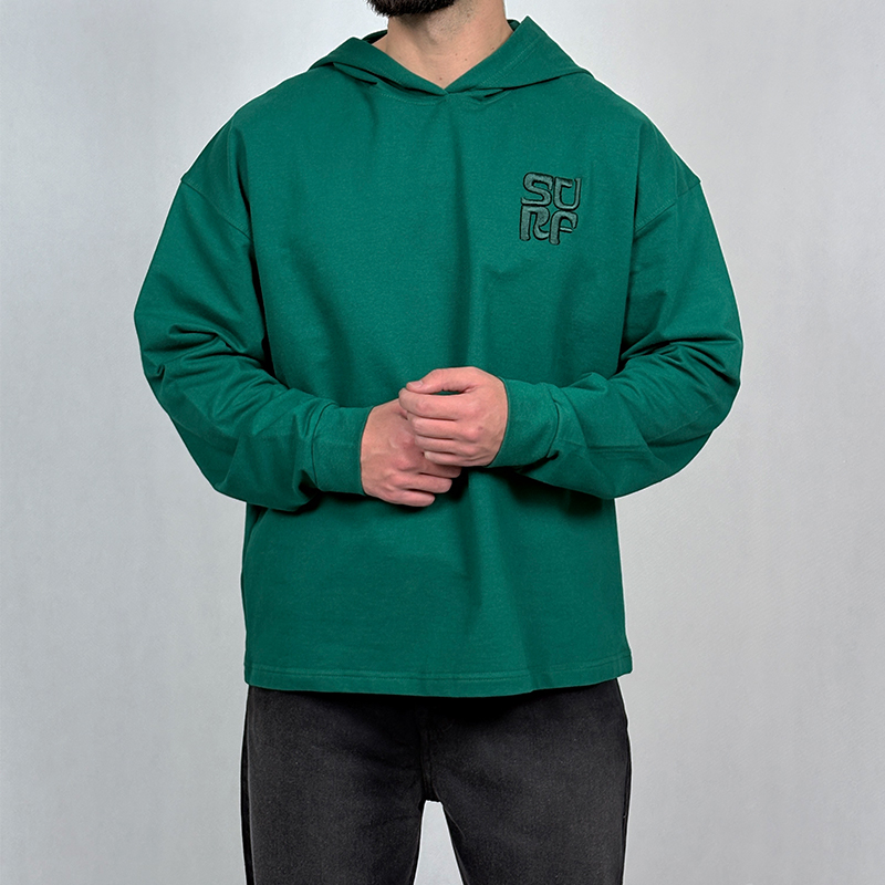 هودی مردانه سبز پنبه دو نخ طرح مینیمال