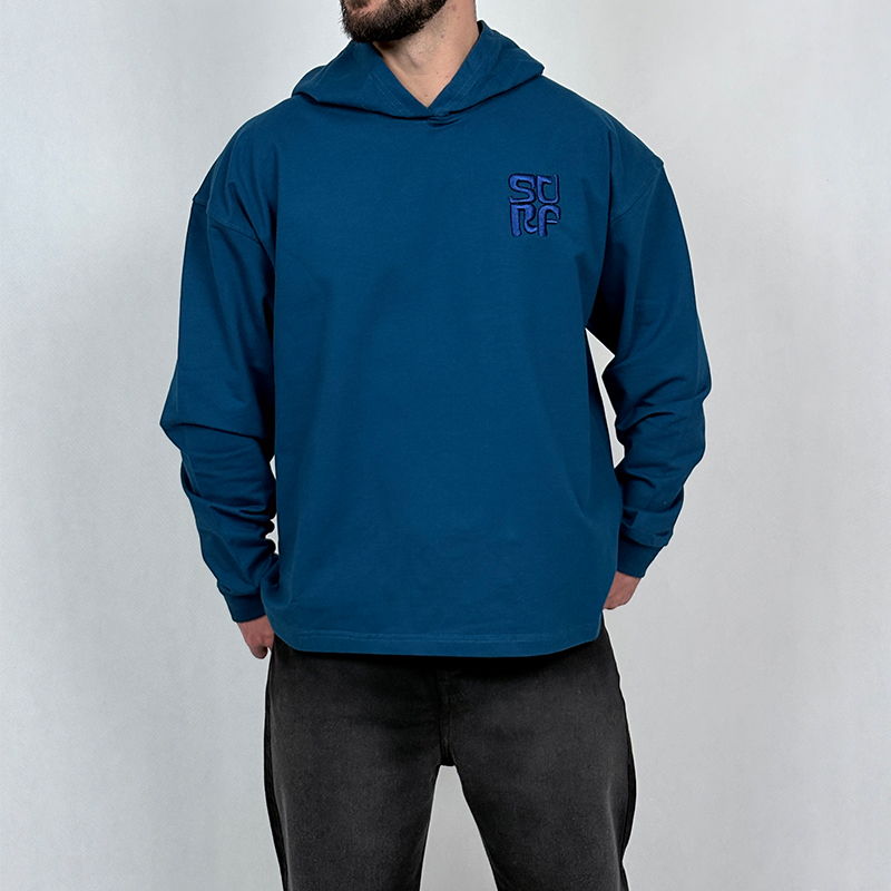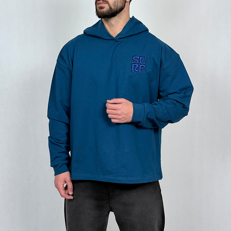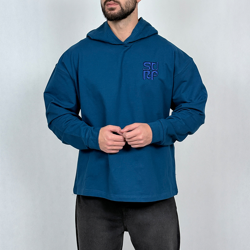 هودی مردانه آبی کله غازی پنبه دو نخ طرح مینیمال