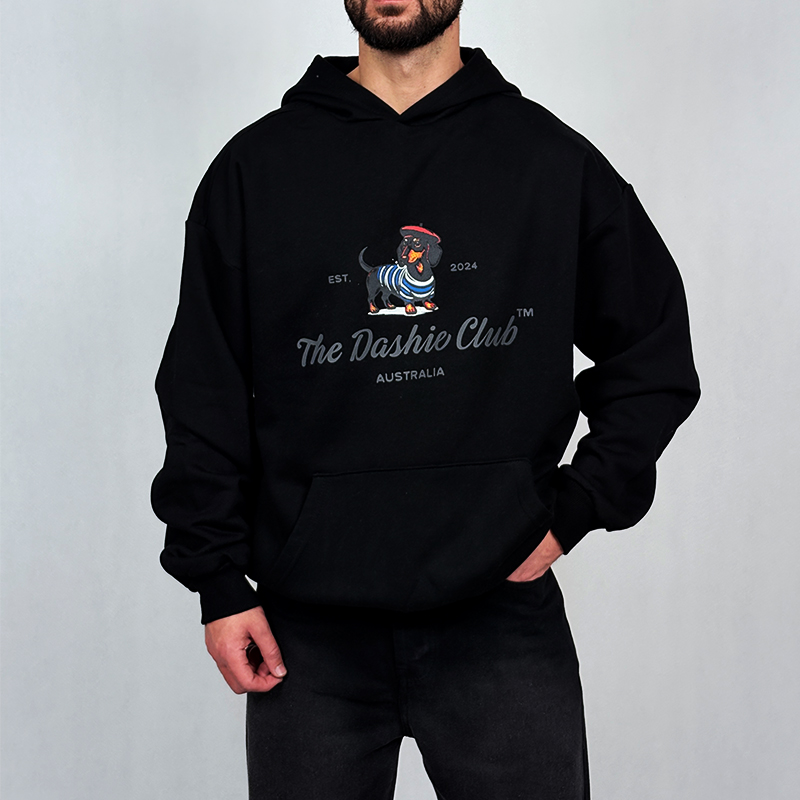 هودی مردانه مشکی پنبه سه نخ طرح dog