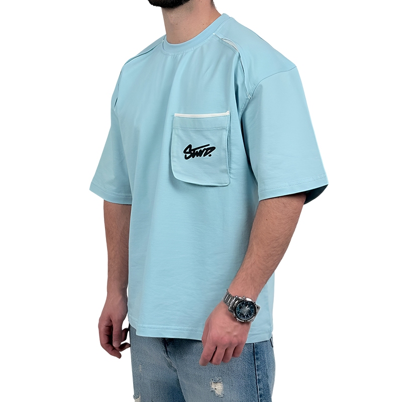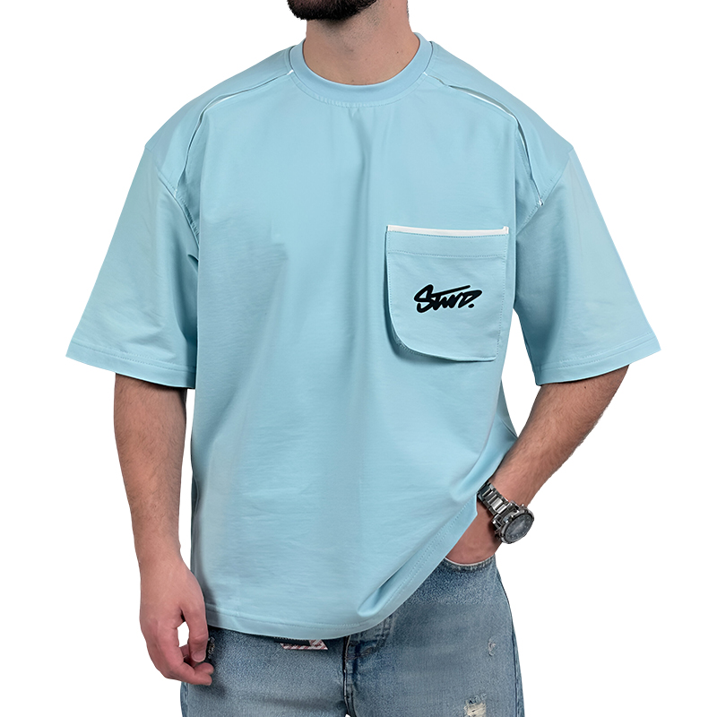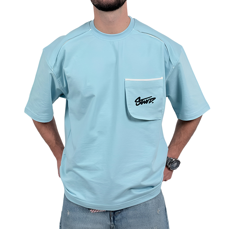 تیشرت آستین کوتاه مردانه آبی جیبدار مدل stwd
