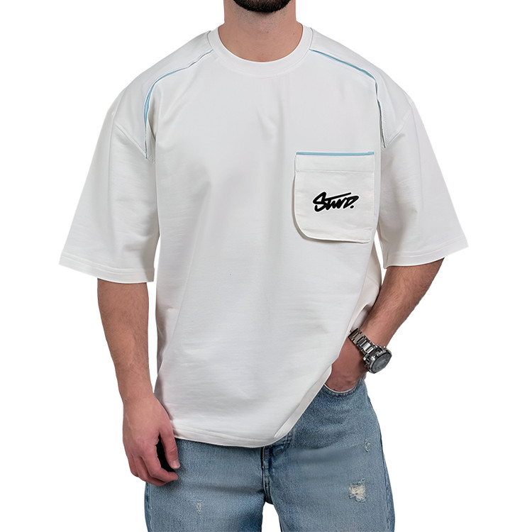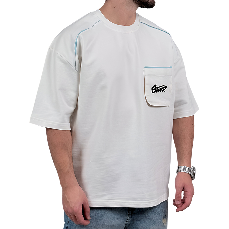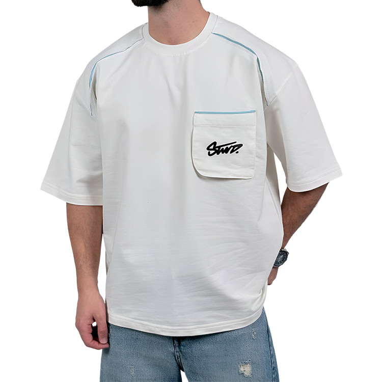 تیشرت آستین کوتاه مردانه سفیدجیبدار مدل stwd