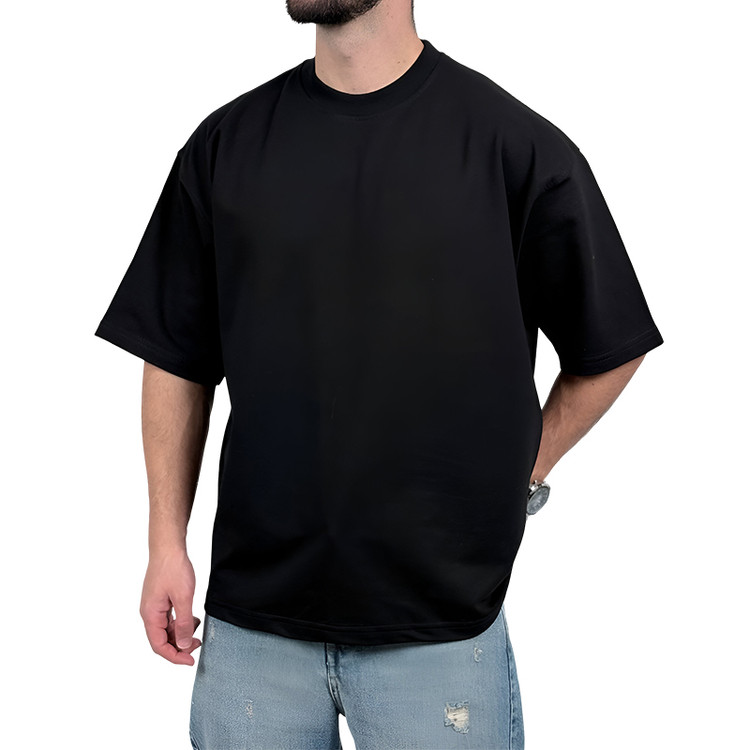 تیشرت ساده آستین کوتاه مردانه مشکی مدل پنبه دونخ
