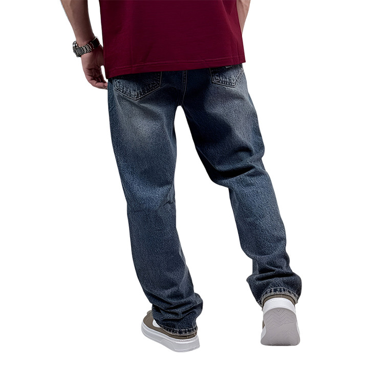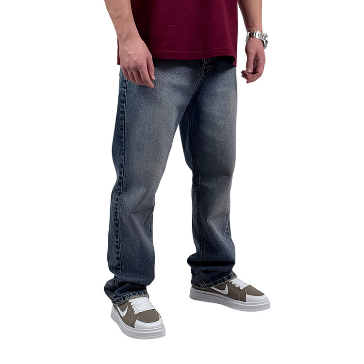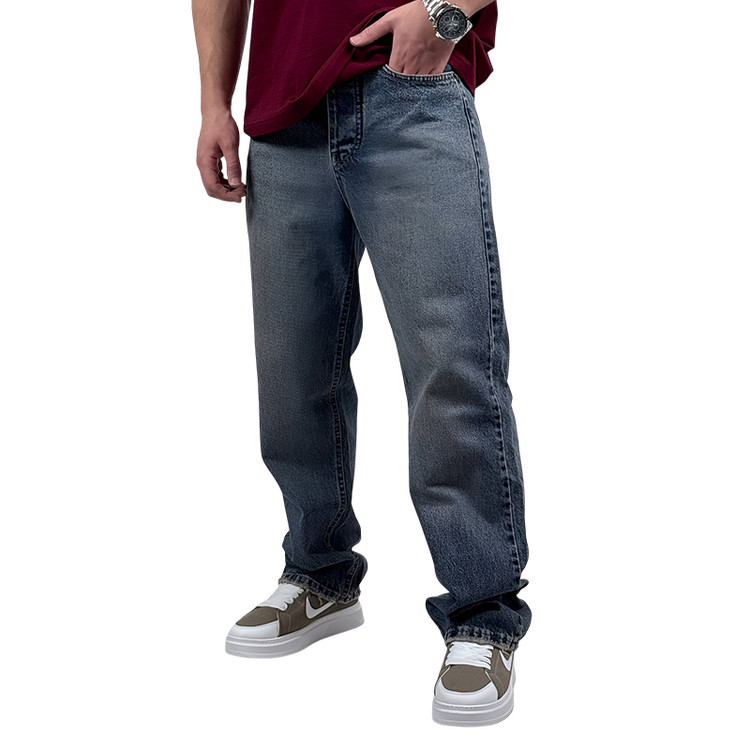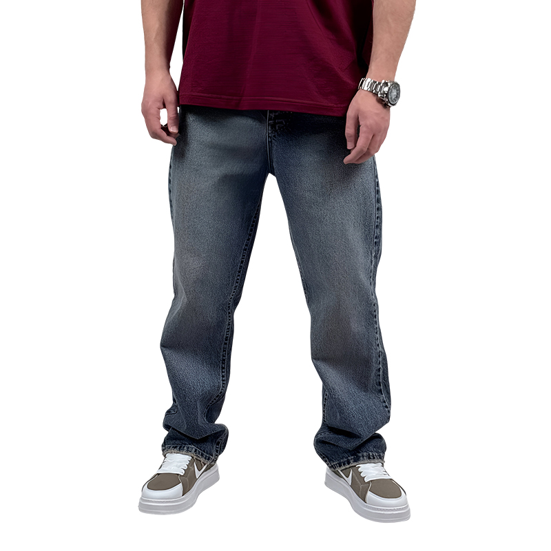 شلوار جین بگ مردانه آبی حاله دار کد 9
