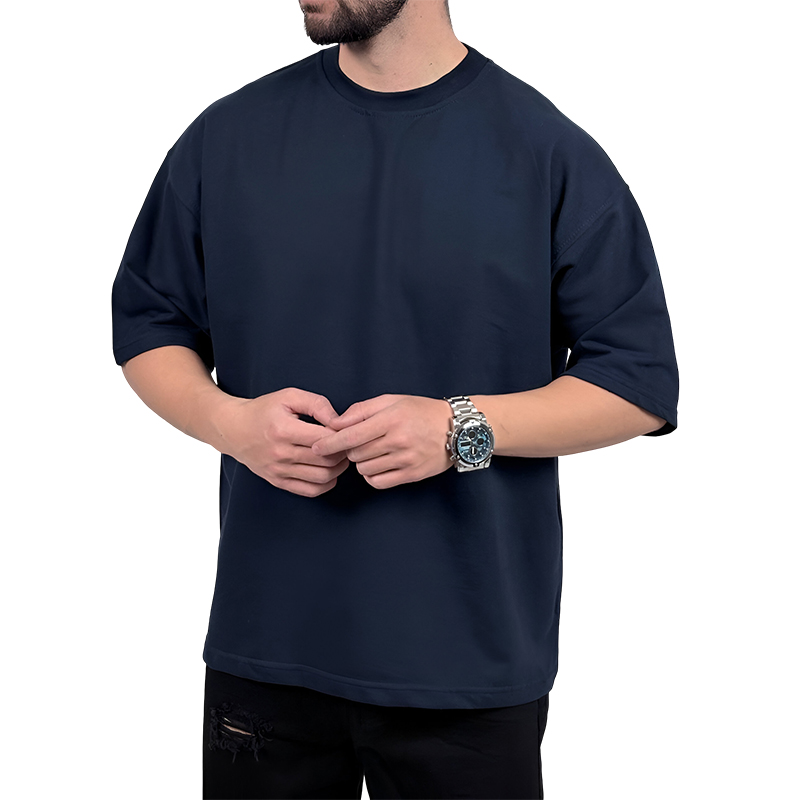 تیشرت ساده آستین کوتاه مردانه سرمه ای مدل پنبه دونخ