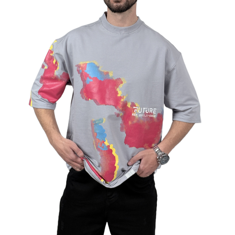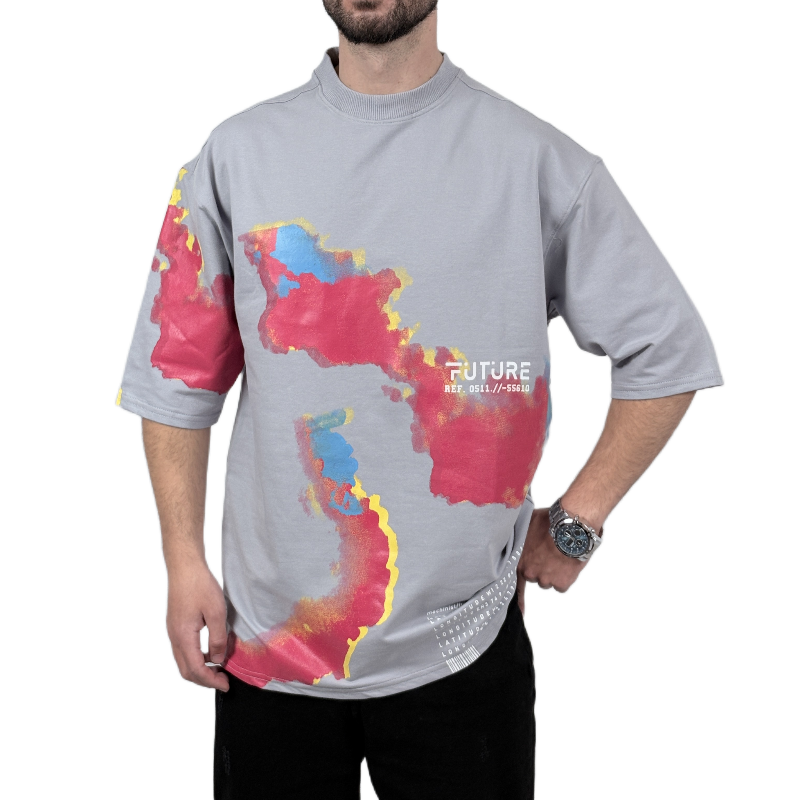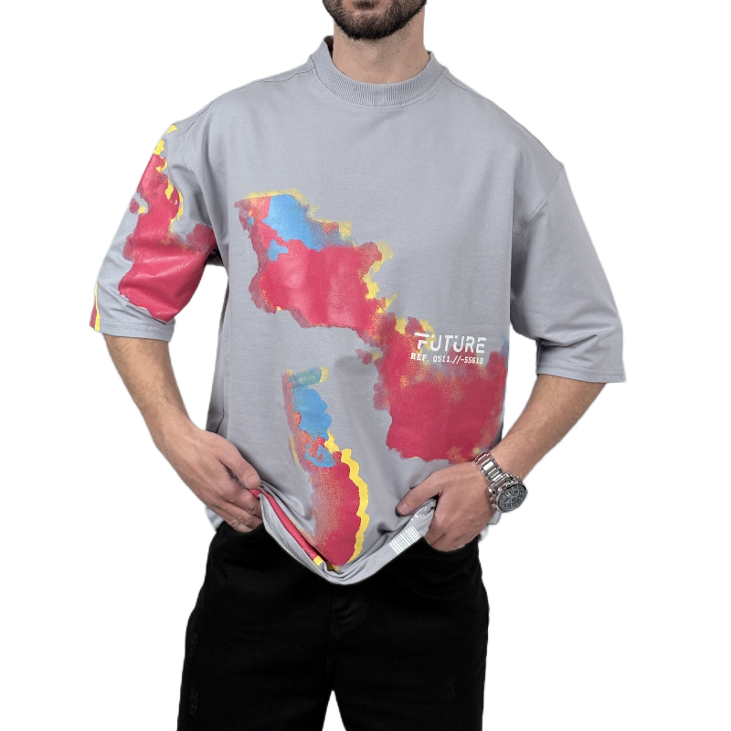 تیشرت آستین کوتاه مردانه طوسی دونخ مدل MAP