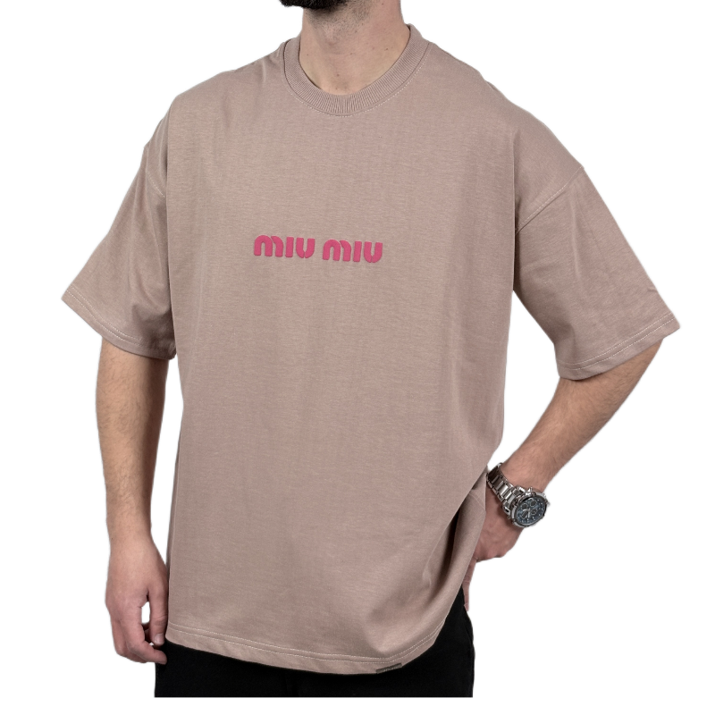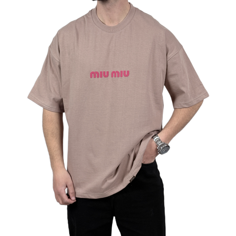 تیشرت آستین کوتاه مردانه کرم دونخ مدل MIU MIU