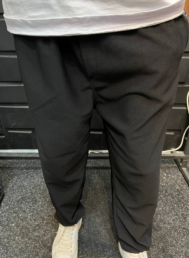 شلوار لینن کمر کش رنگ مشکی طرح زنبوری برند مچینست