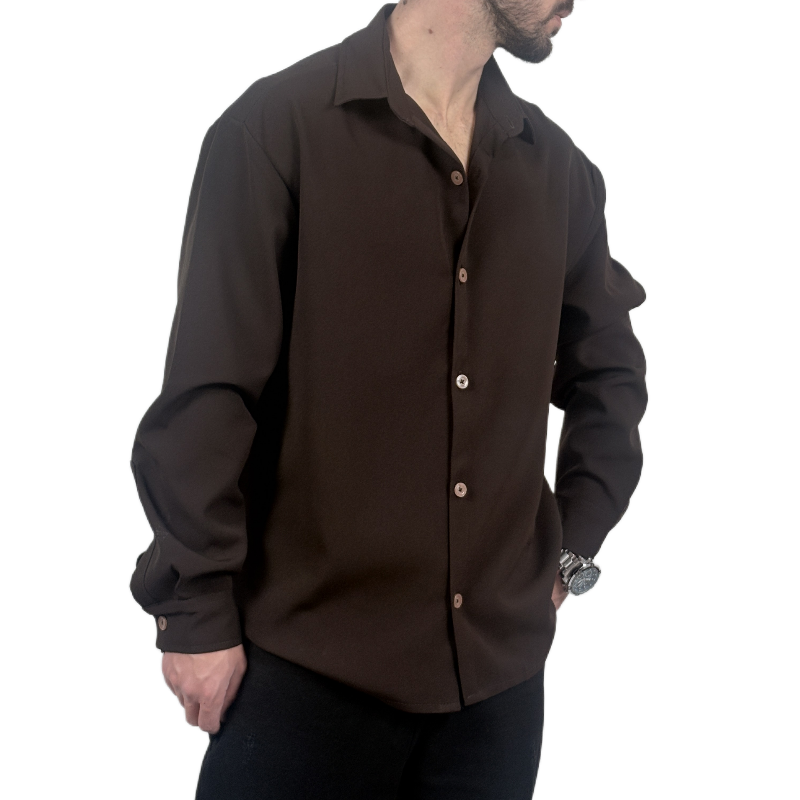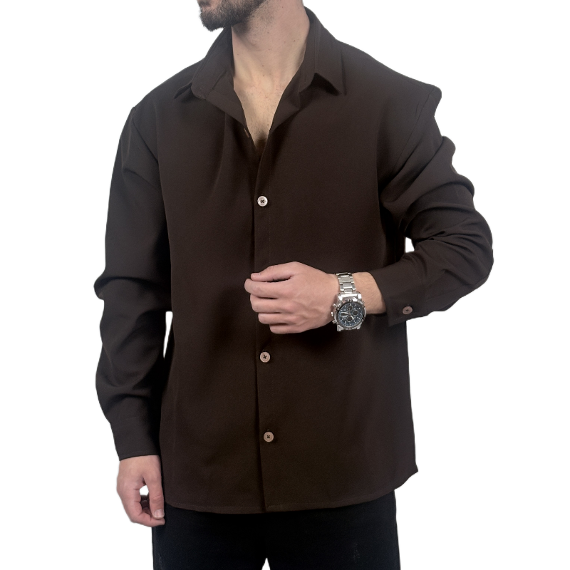 پیراهن آستین بلند مردانه قهوه ای مازراتی مدل ساده
